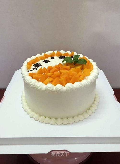 1. 将冷却好的蛋糕脱模,放在蛋糕板上。